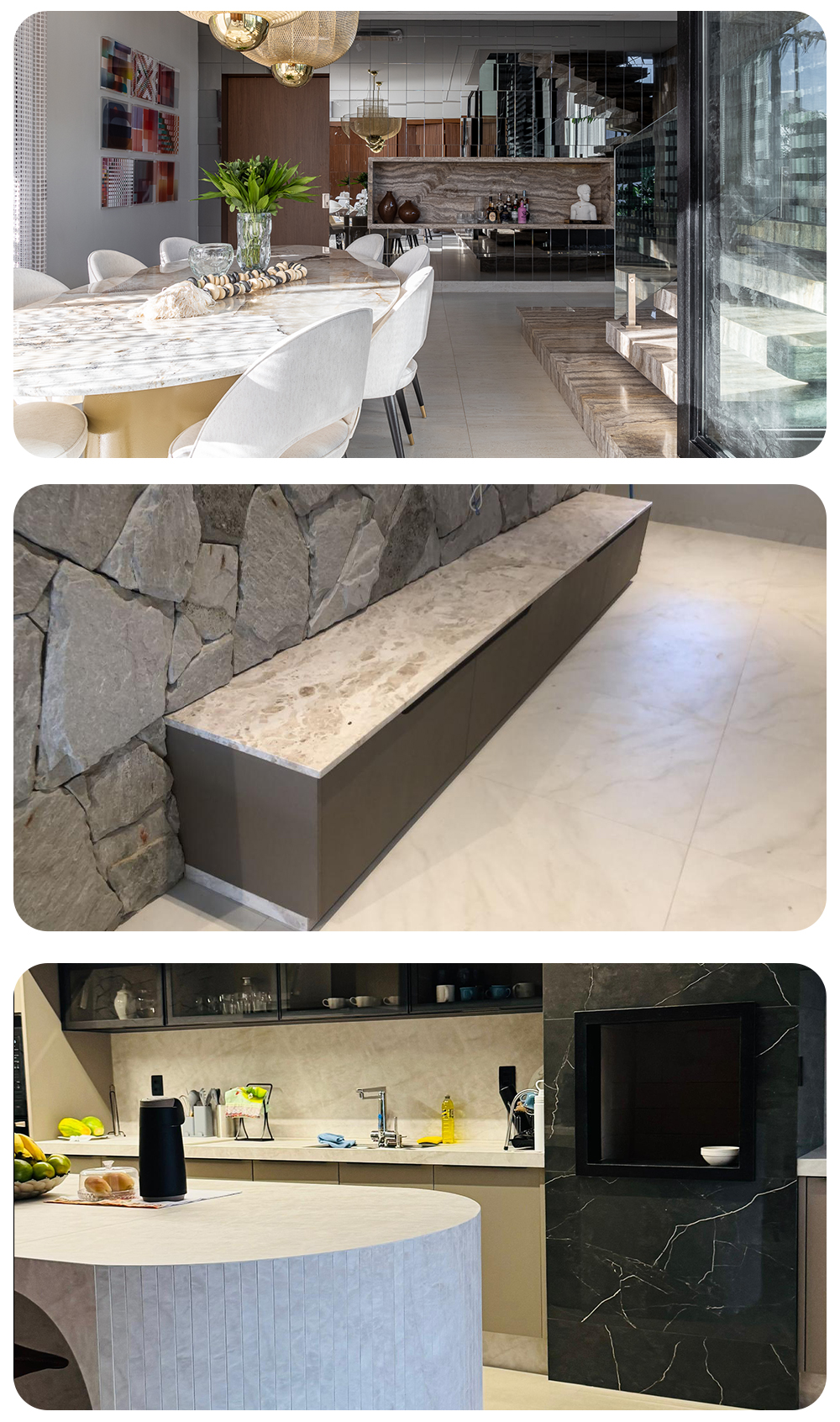 Aqui na Brasil Granitos você encontra tanto pedras naturais (como granitos, mármores e quartzitos) quanto industrializadas (como quartzos e lâminas ultracompactas), além de materiais exóticos e importados. Assim, conseguimos indicar a opção ideal para o seu projeto.